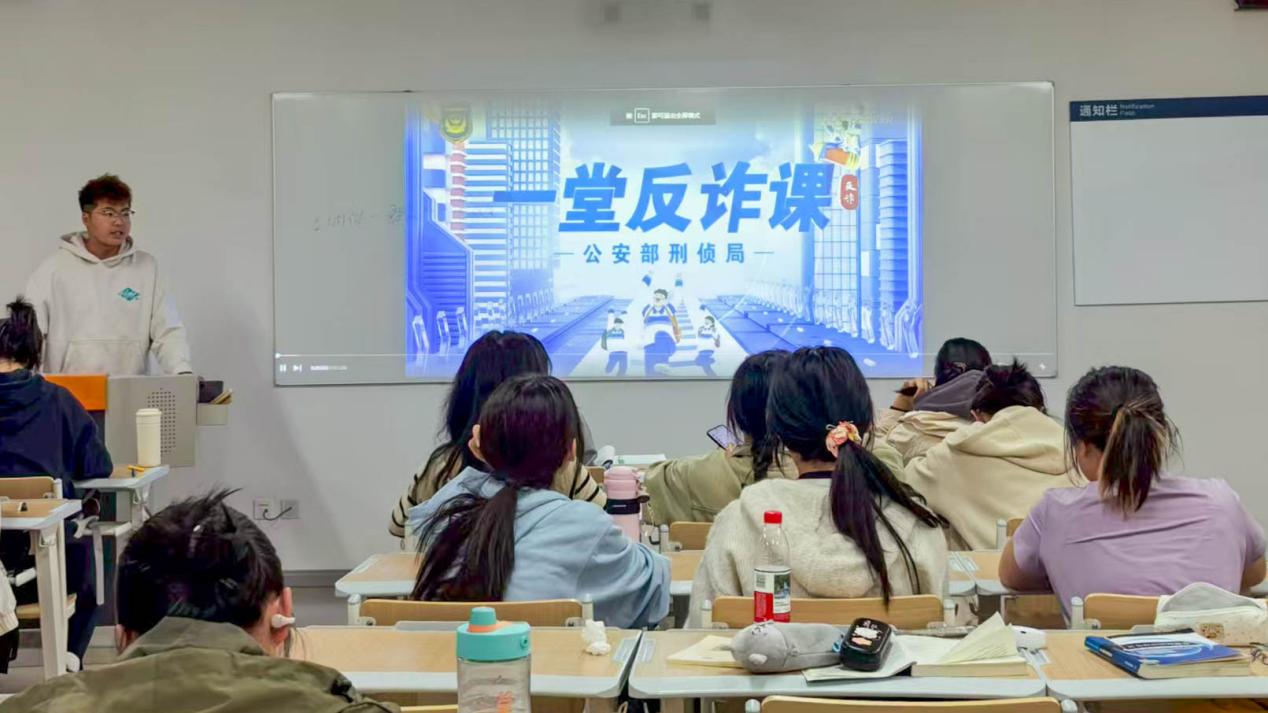 学院组织同学们在线观看2025年秋季学期"大中小学生反诈大讲堂"直播。本次直播由公安部刑侦局联合央视频共同呈现,特邀一线反诈民警结合近年高发的"AI换脸诈骗""游戏账号交易陷阱""虚假兼职信息"等典型案例进行深度剖析。直播中,民警通过情景再现、数据解读、防范技巧传授三重维度展开教学,同学们全程全神贯注,认真记录笔记,并在互动环节通过弹幕积极提问,受益良多,显著提升反诈防骗水平。